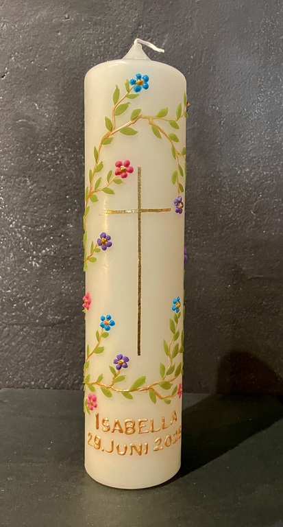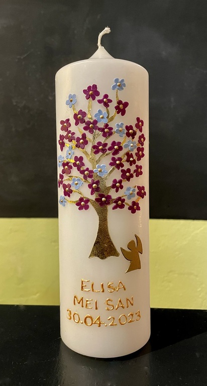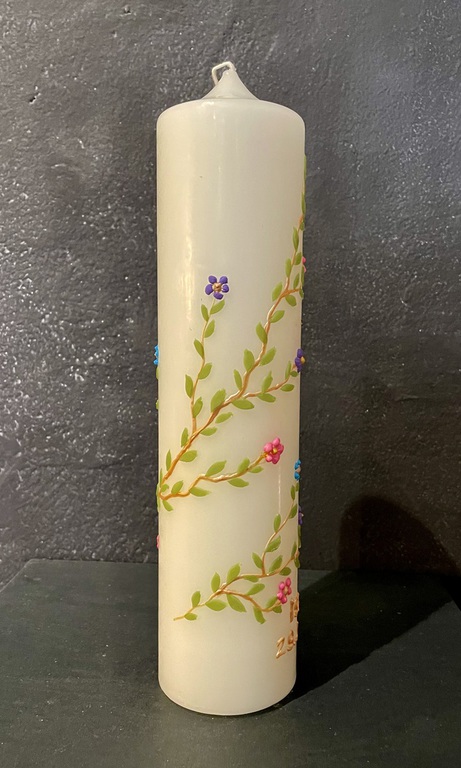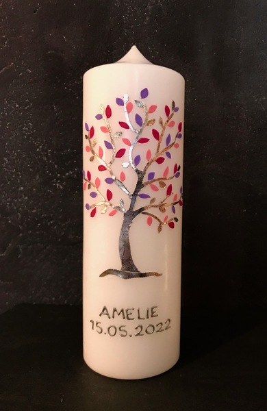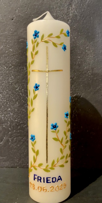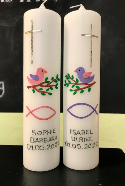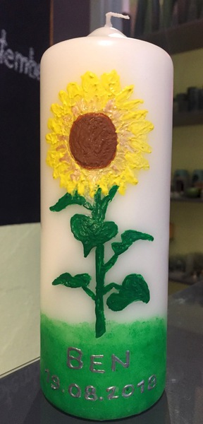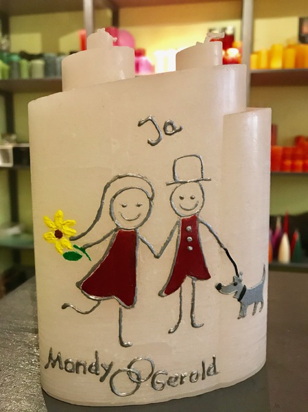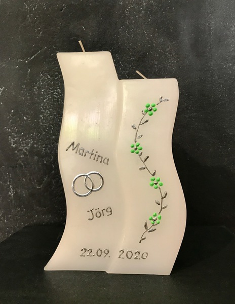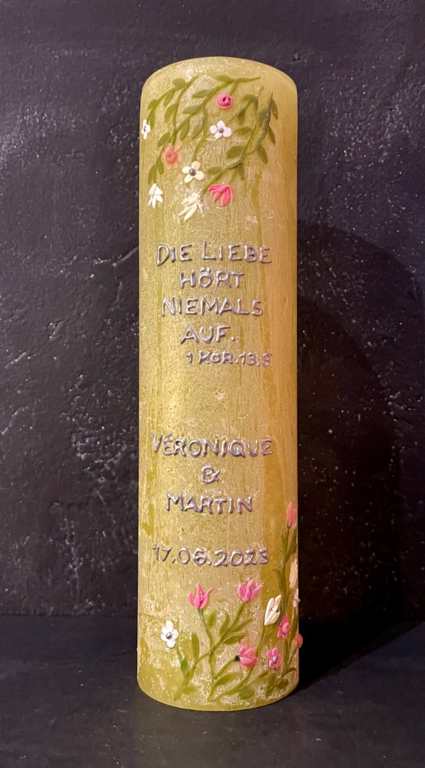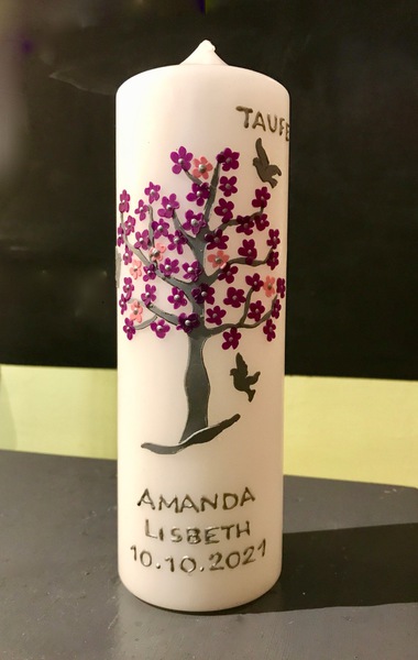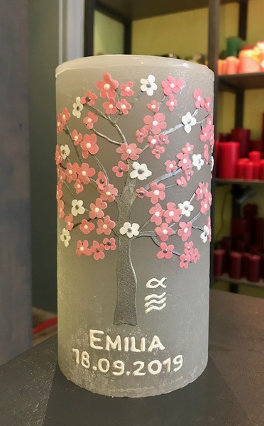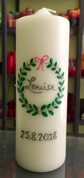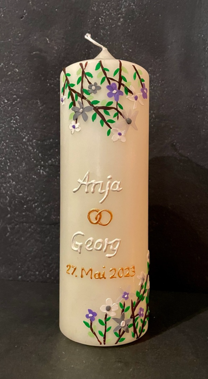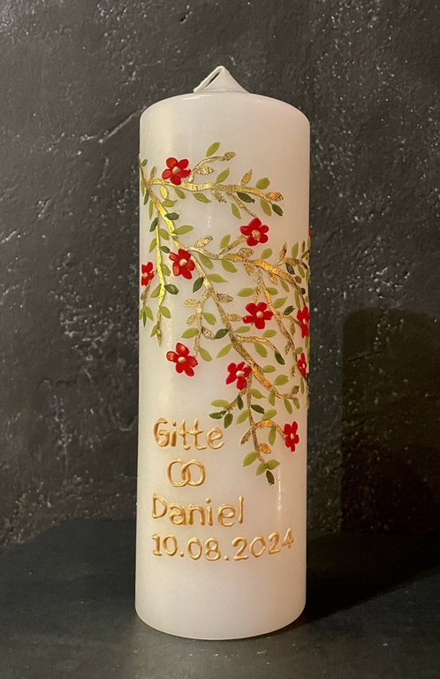 Auf Wunsch gestalte ich Kerzen für verschiedene Anlässe, zum Beispiel für Hochzeiten, Geburtstage oder zur Taufe.