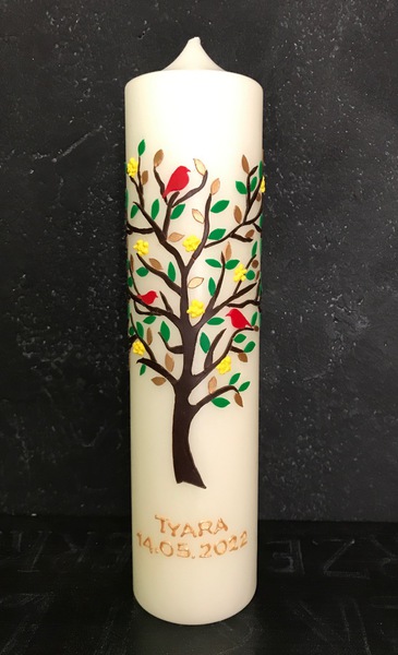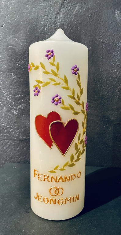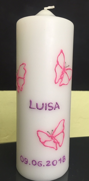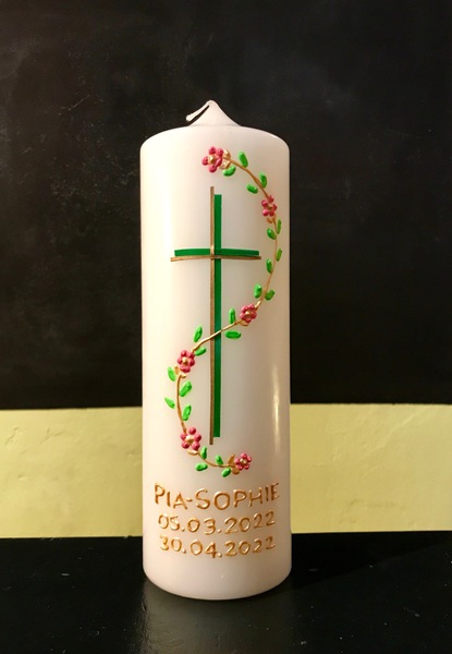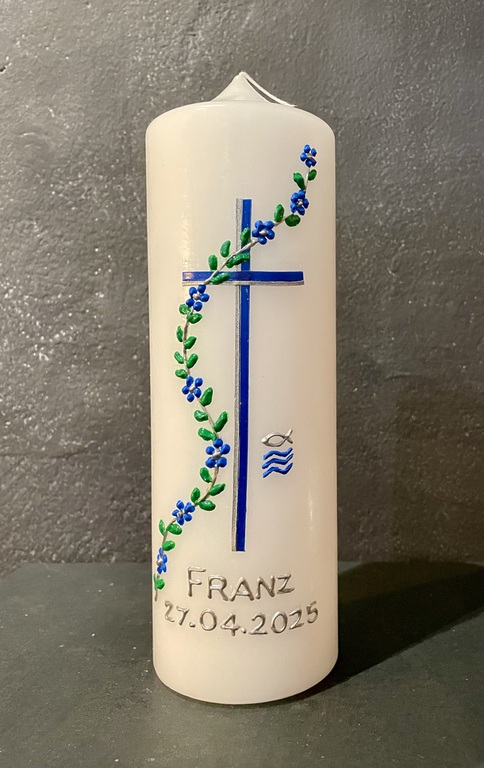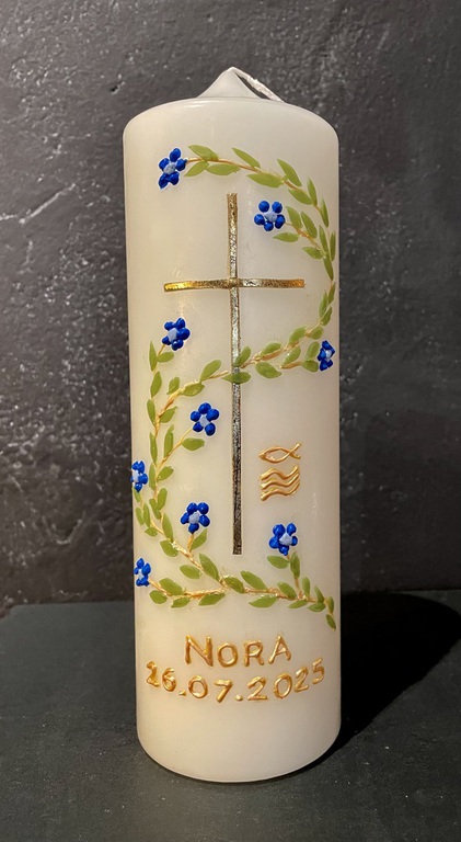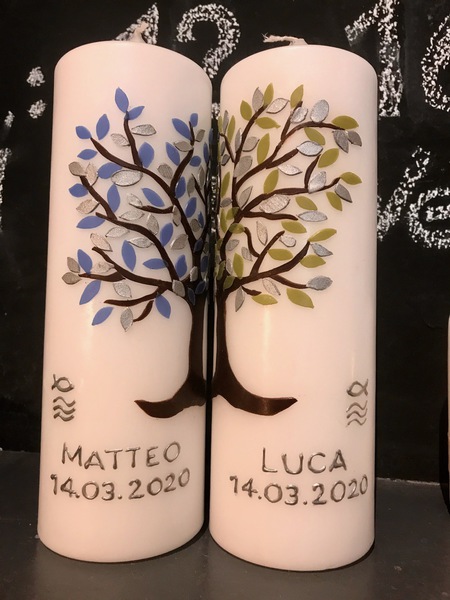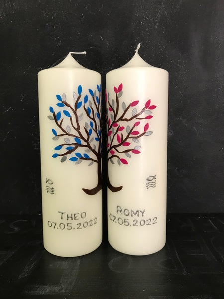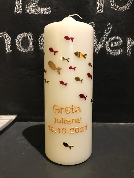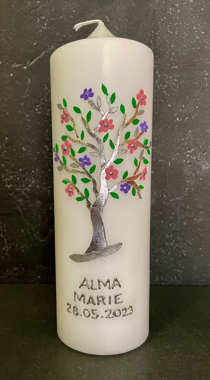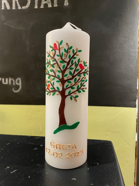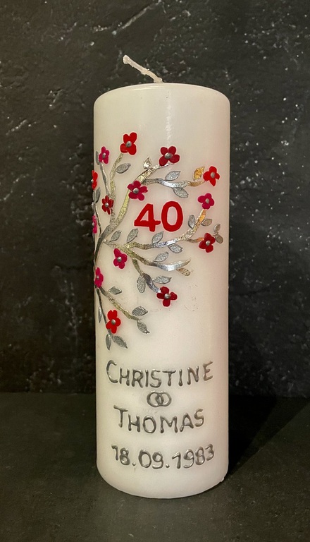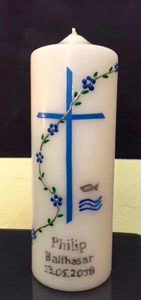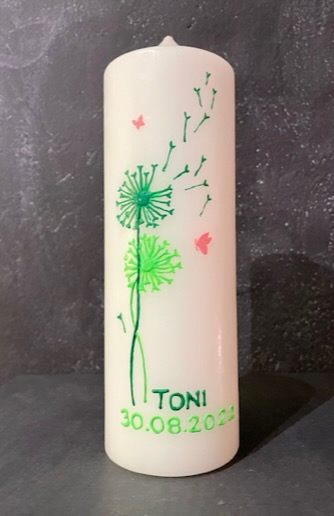 Auf Wunsch gestalte ich Kerzen für verschiedene Anlässe, zum Beispiel für Hochzeiten, Geburtstage oder zur Taufe.