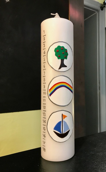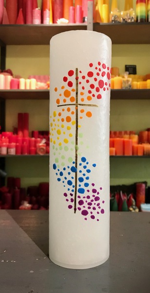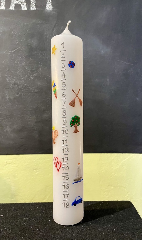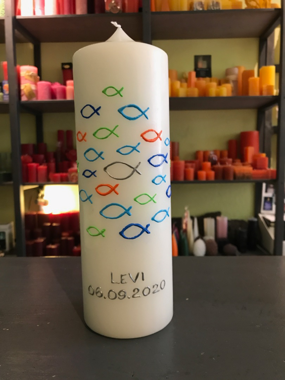 Man kann in unserem Laden auch die Kerzenrohlinge sowie Materialien wie Wachsplatten und Wachspens in vielen Farben kaufen und die Kerze zu Hause gestalten. Ich verrate auch gerne ein paar Tricks, wie es einfacher geht.
