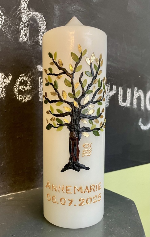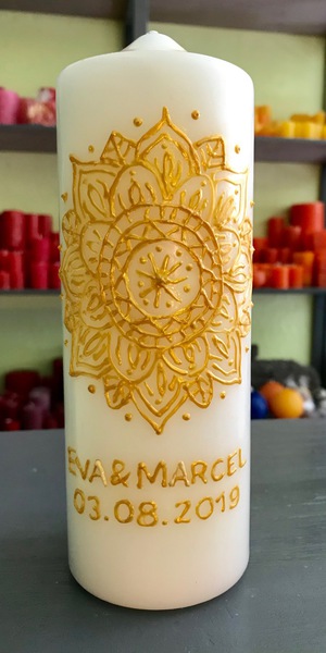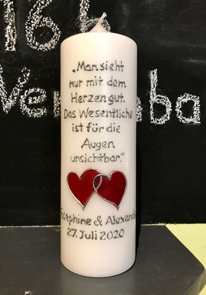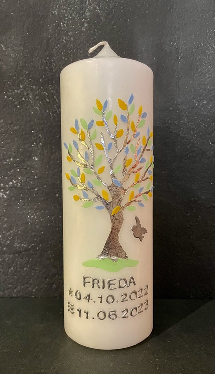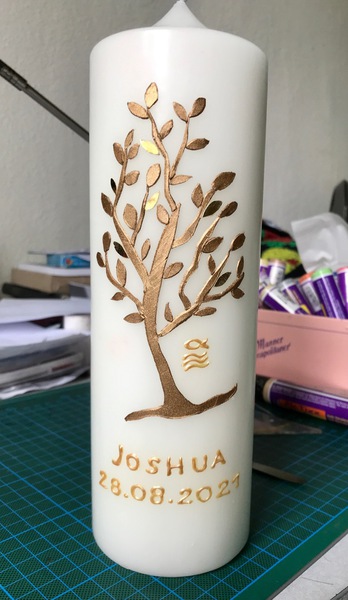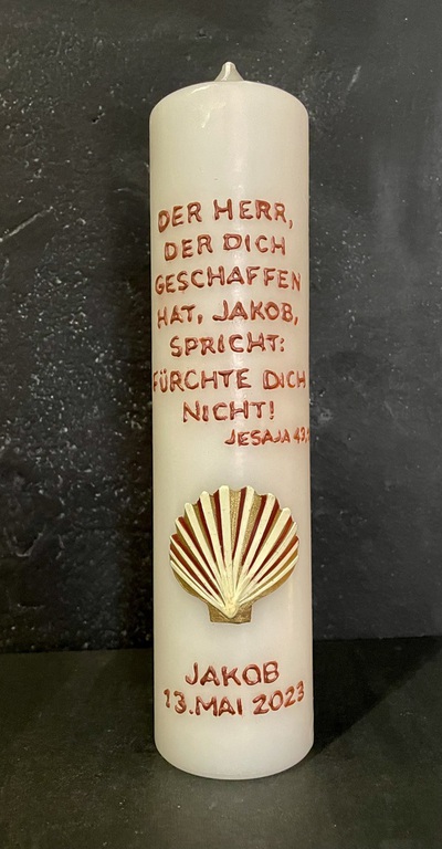 Damit ich die Kerze in der gebotenen Sorgfalt und in höchstmöglicher Qualität fertigen kann, bitte ich für die Beschriftung ca. eine Woche Zeit einzuplanen. Fragt mich aber, wenn ihr die Kerze schneller braucht - es geht vielleicht noch was...